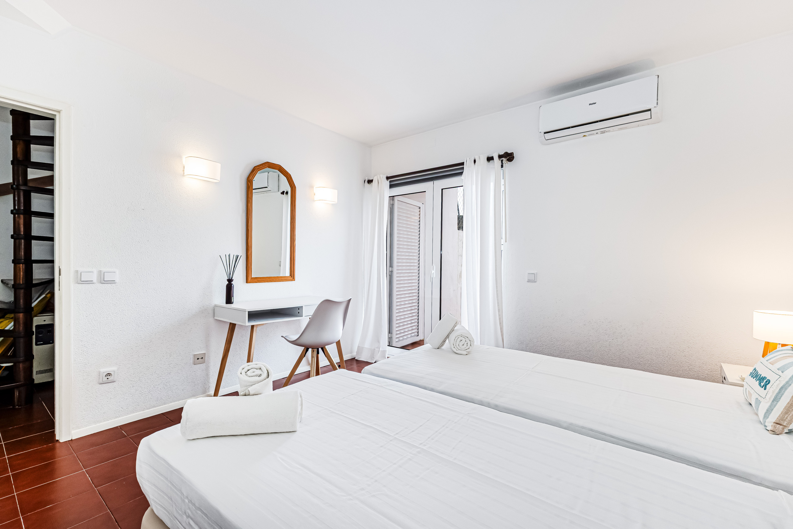✔ 1 quarto com duas camas single – com ar condicionado