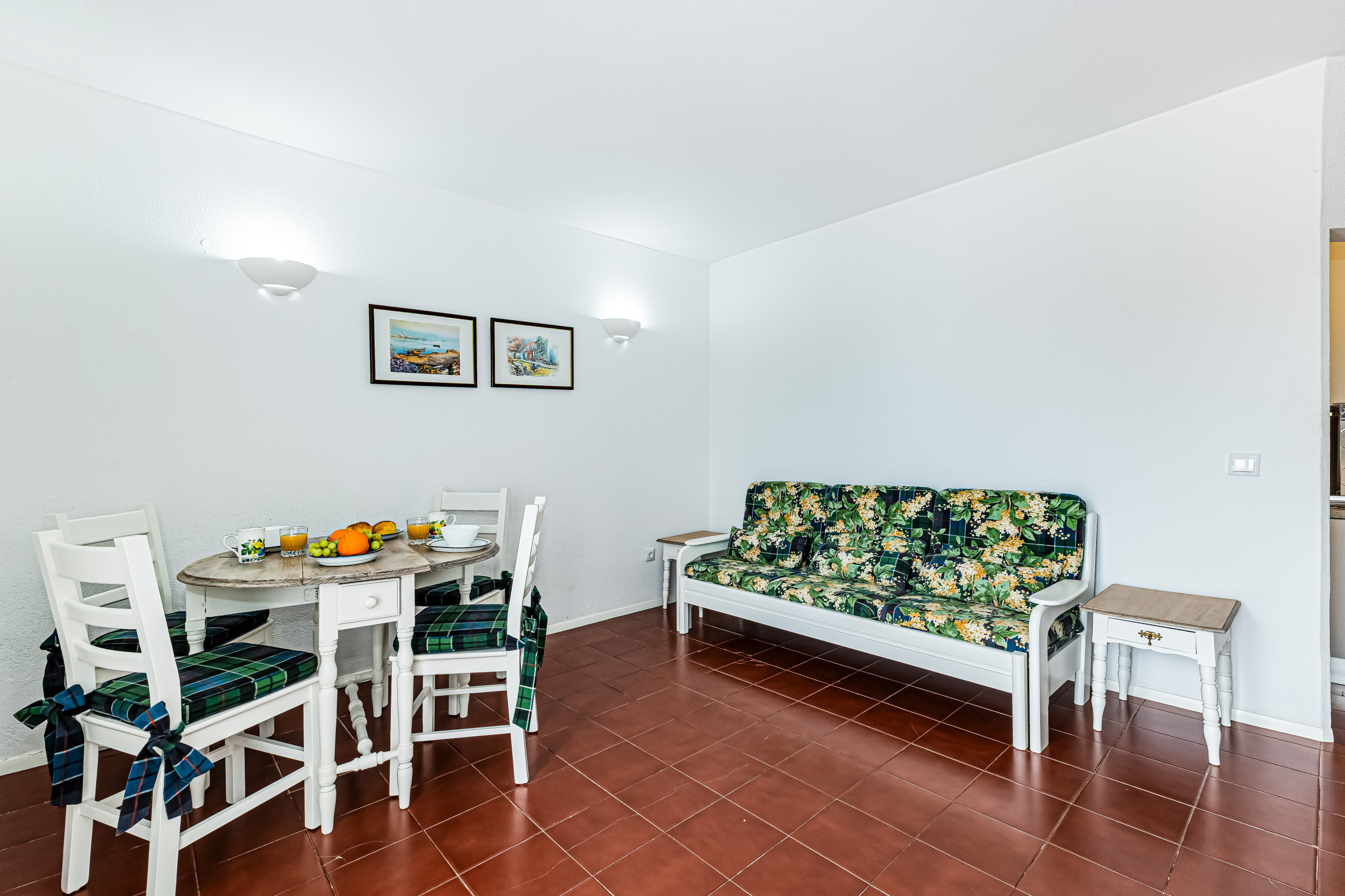 ✔ Sala ampla com TV, zona de refeições para 3 pessoas e sofá-cama