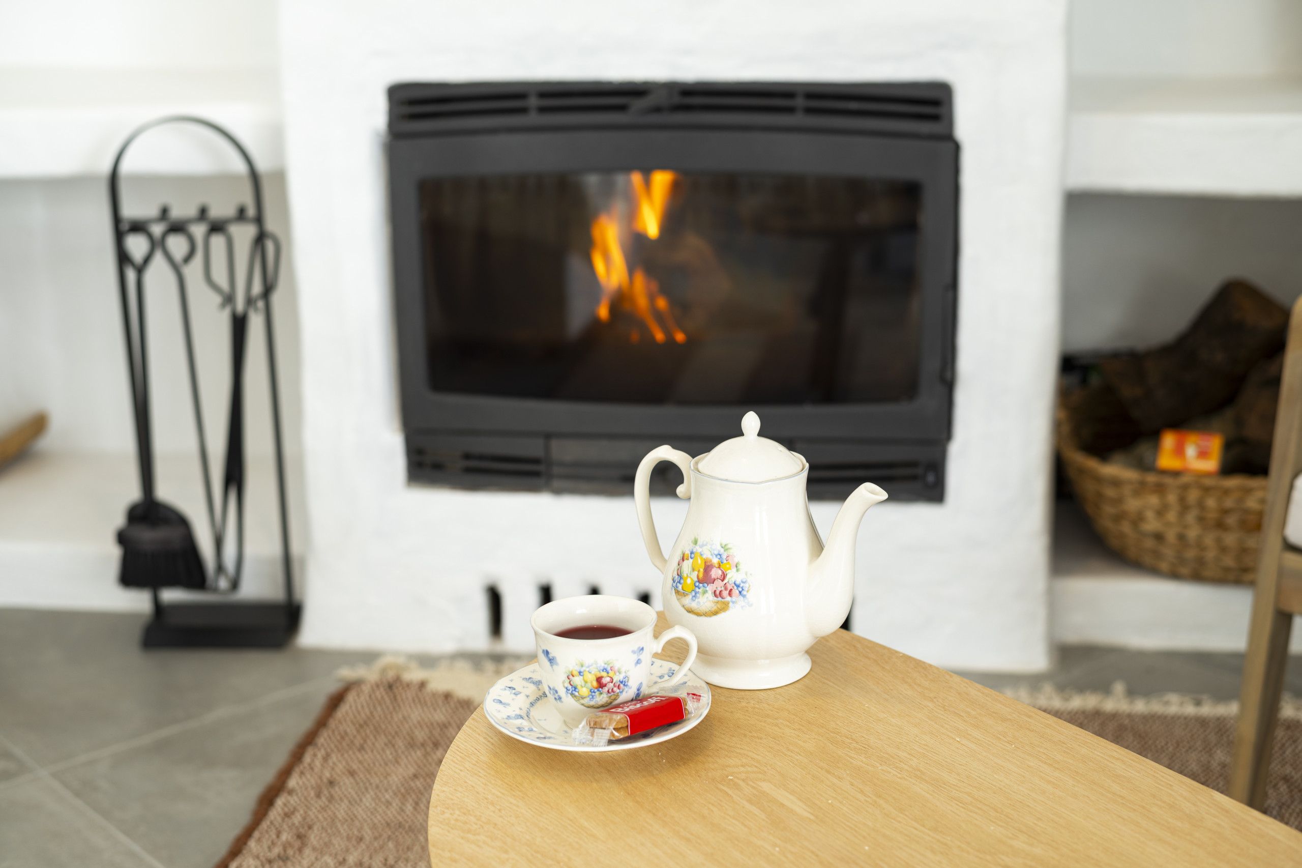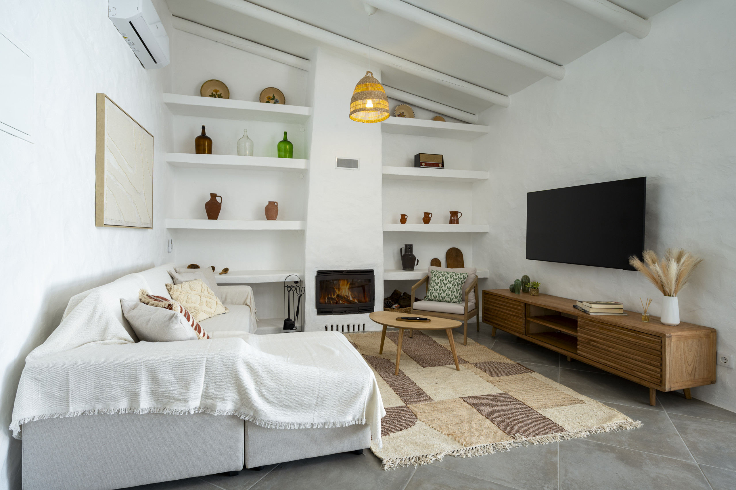 ✔ Sala de estar acolhedora com TV, lareira, zona de refeições e sofá-cama de casal