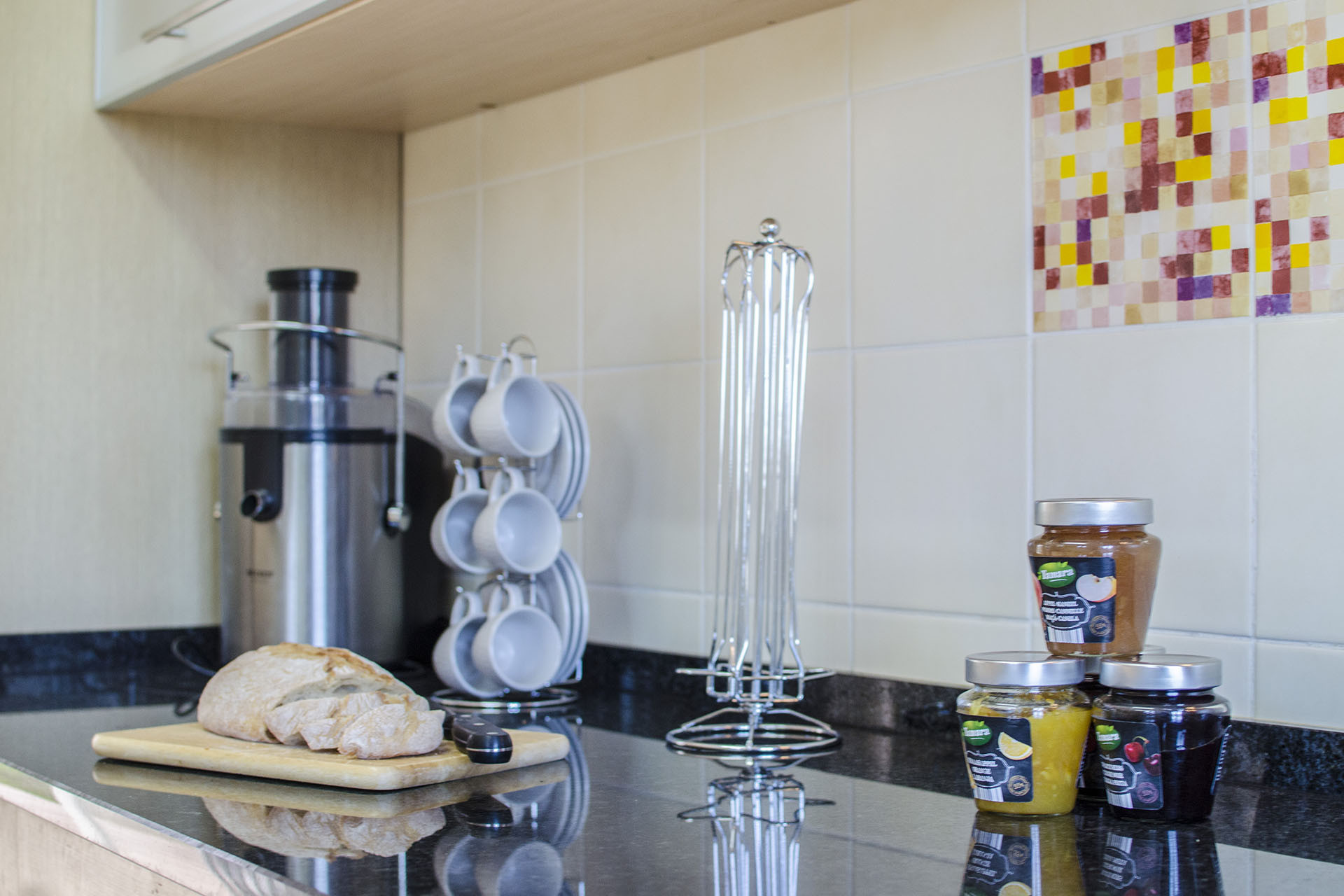 A casa conta com uma cozinha elegante e prática, totalmente equipada com máquina de lavar loiça, micro-ondas, máquina de café e outros acessórios indispensáveis para tornar as suas férias mais confortáveis. A cozinha tem acesso direto ao BBQ e consequentemente á zona da piscina.