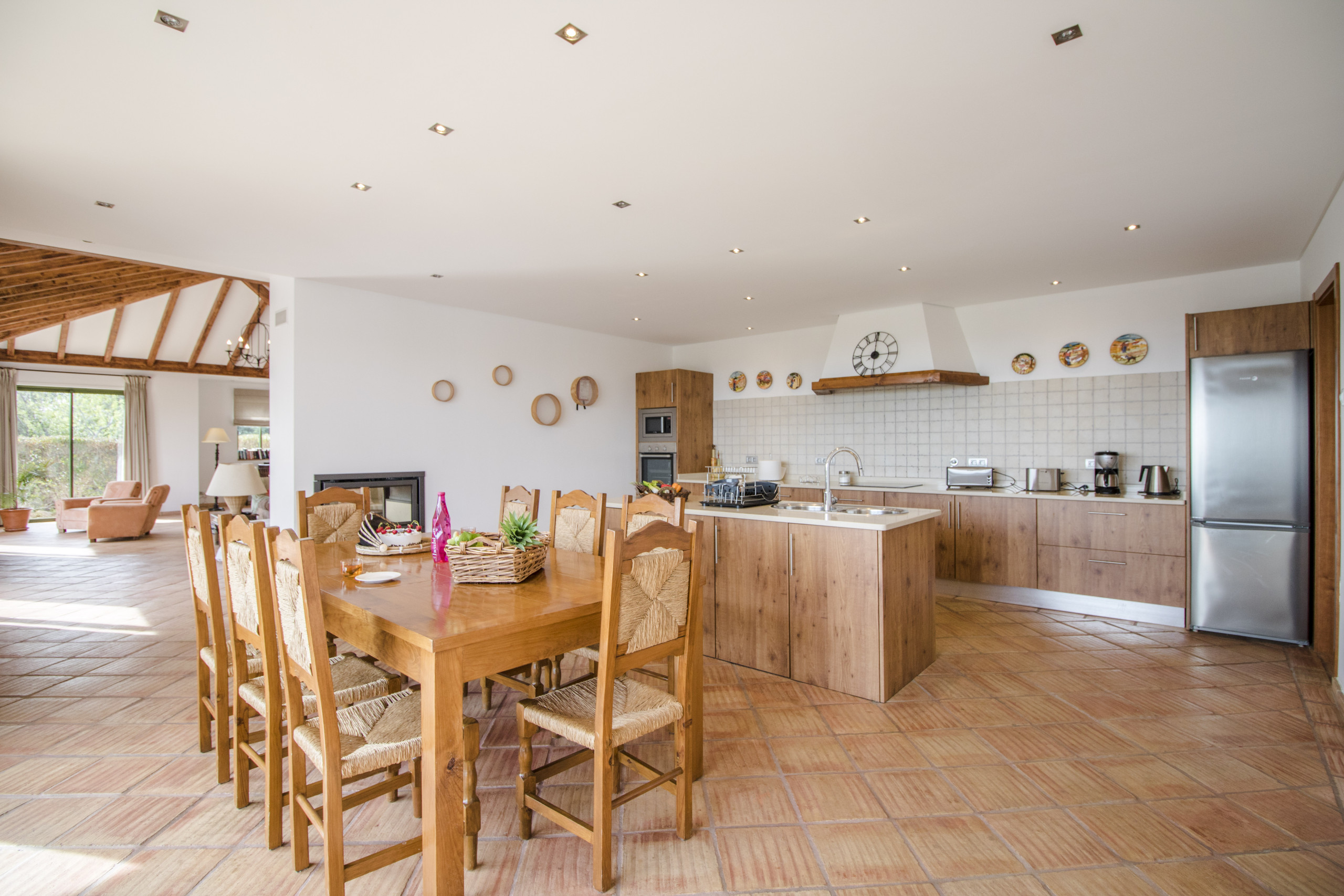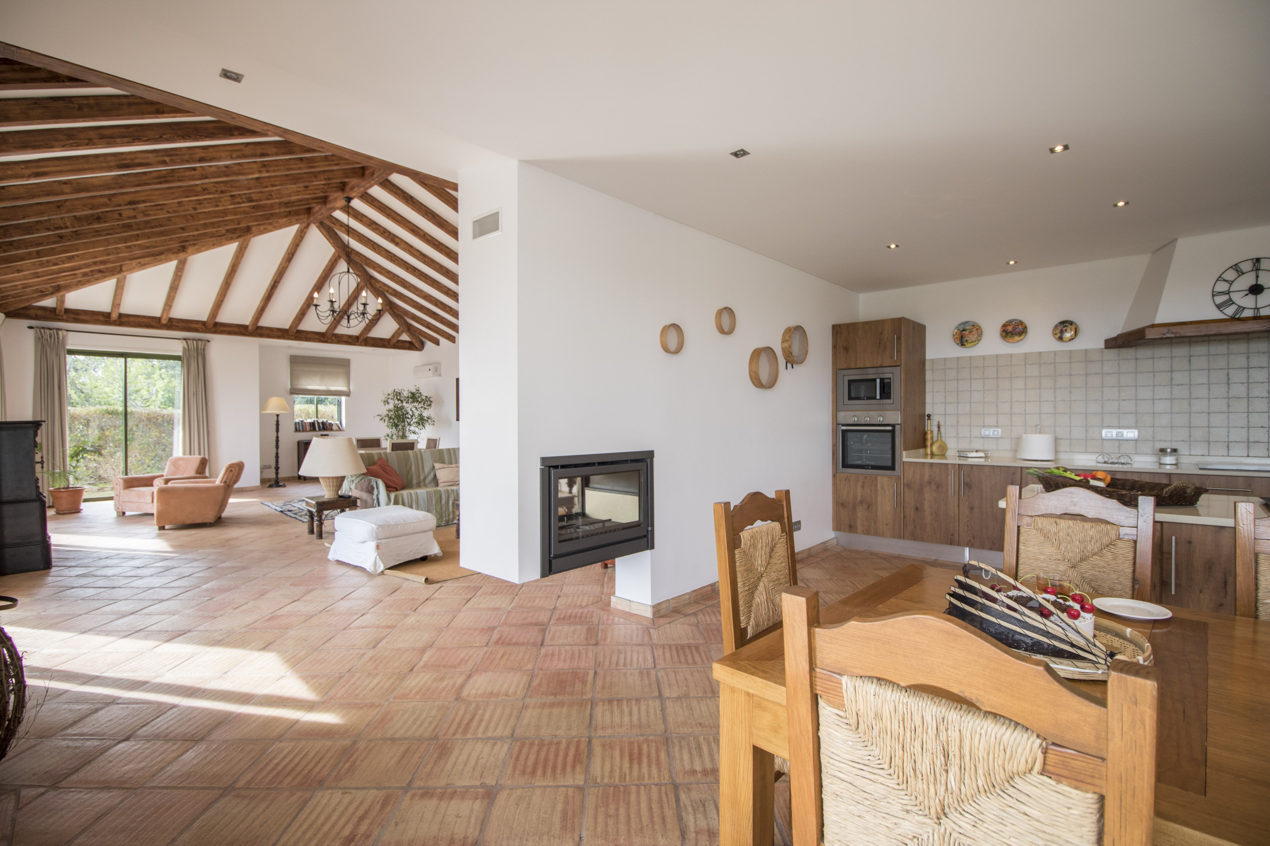 The kitchen is open space, spacious and fully equipped with dishwasher machine, microwave and all essential appliances.