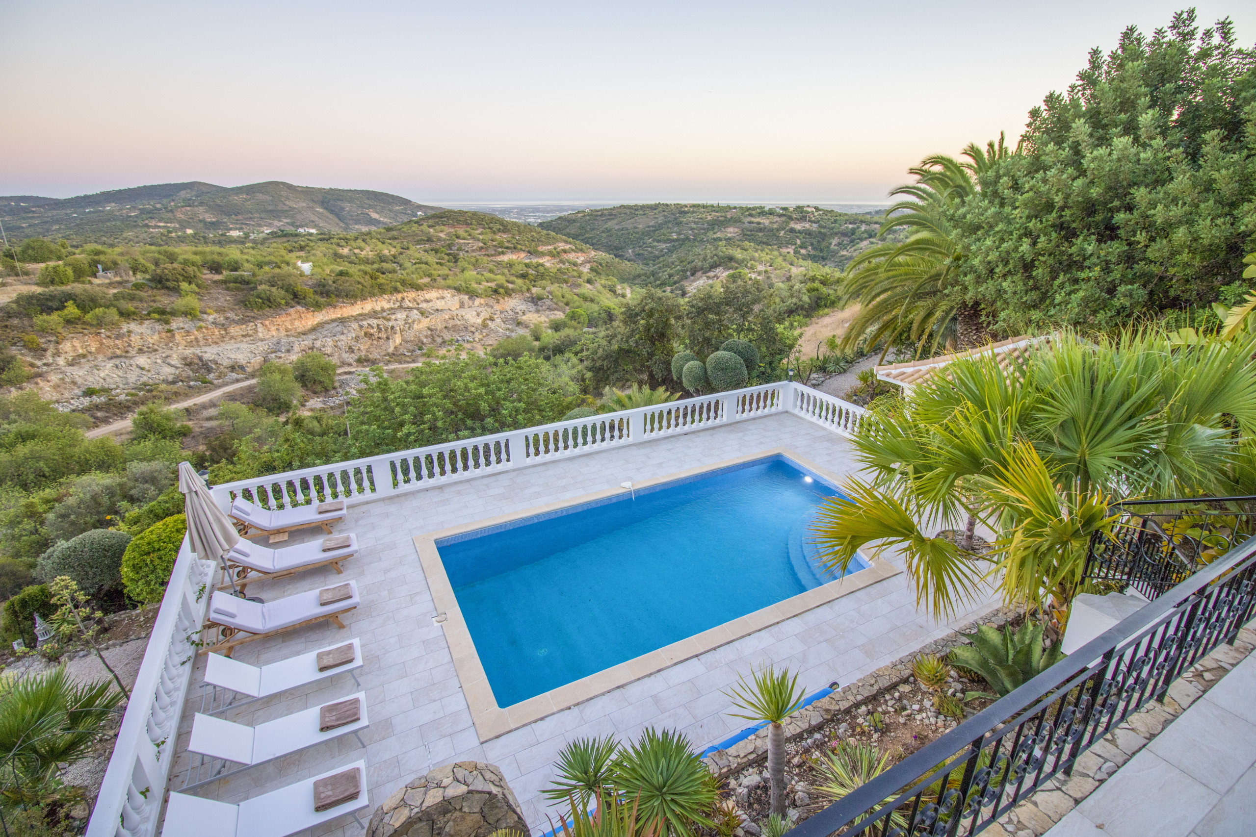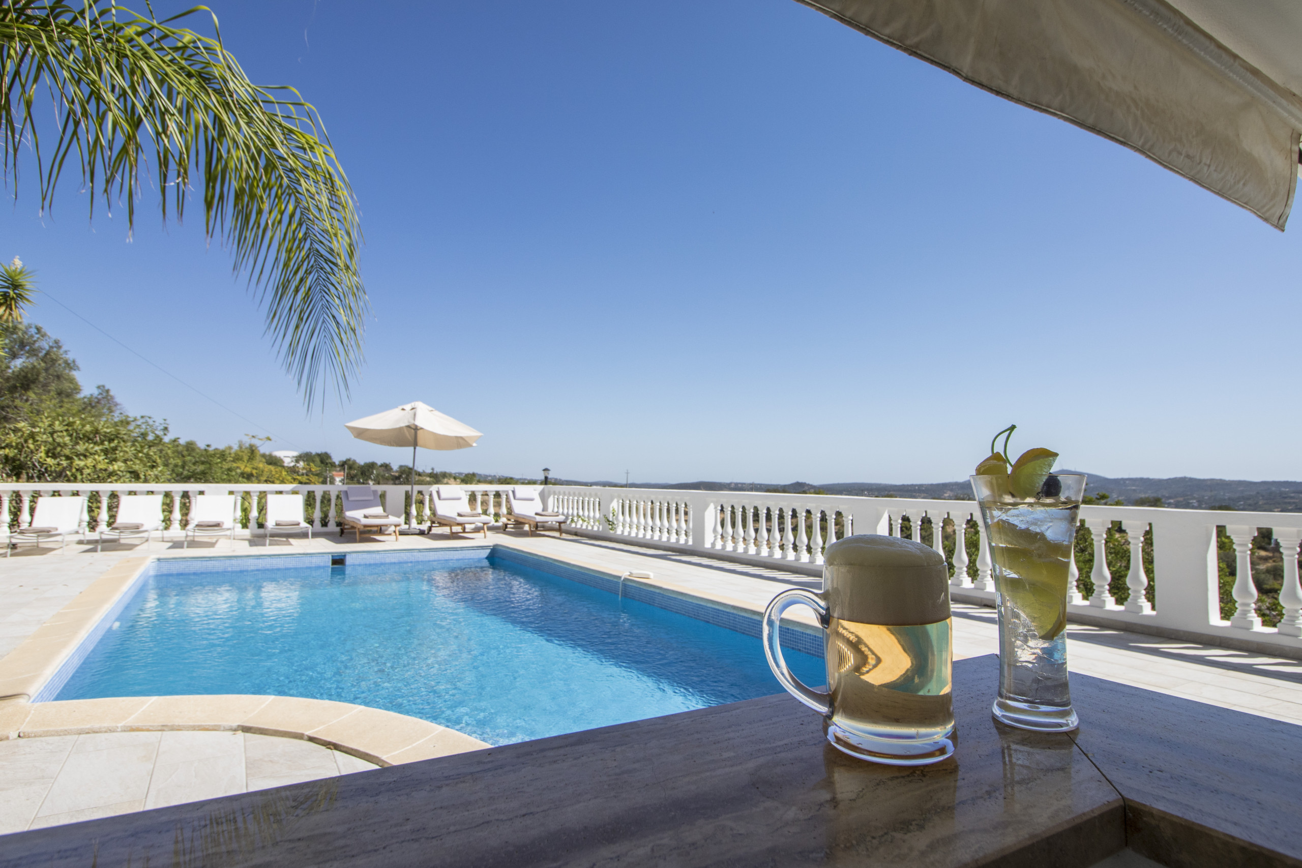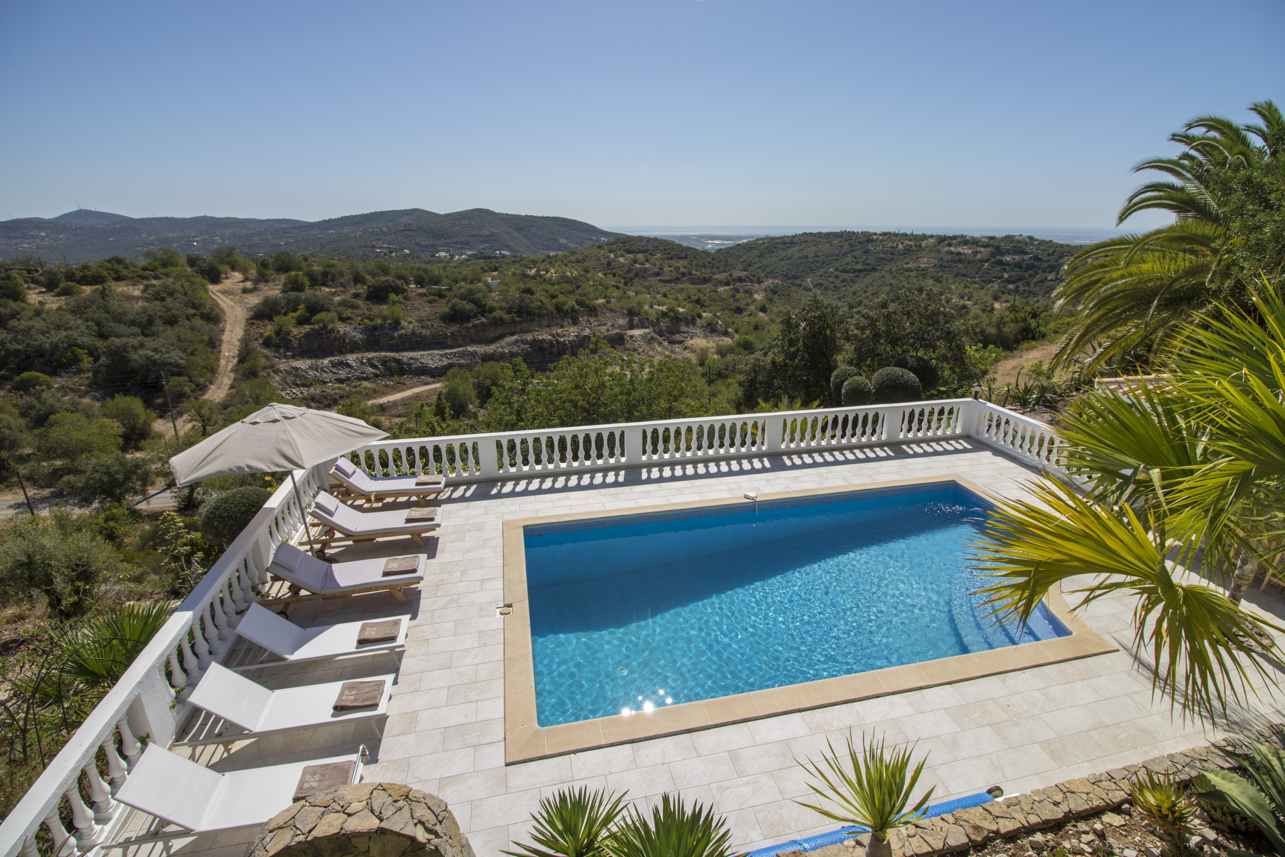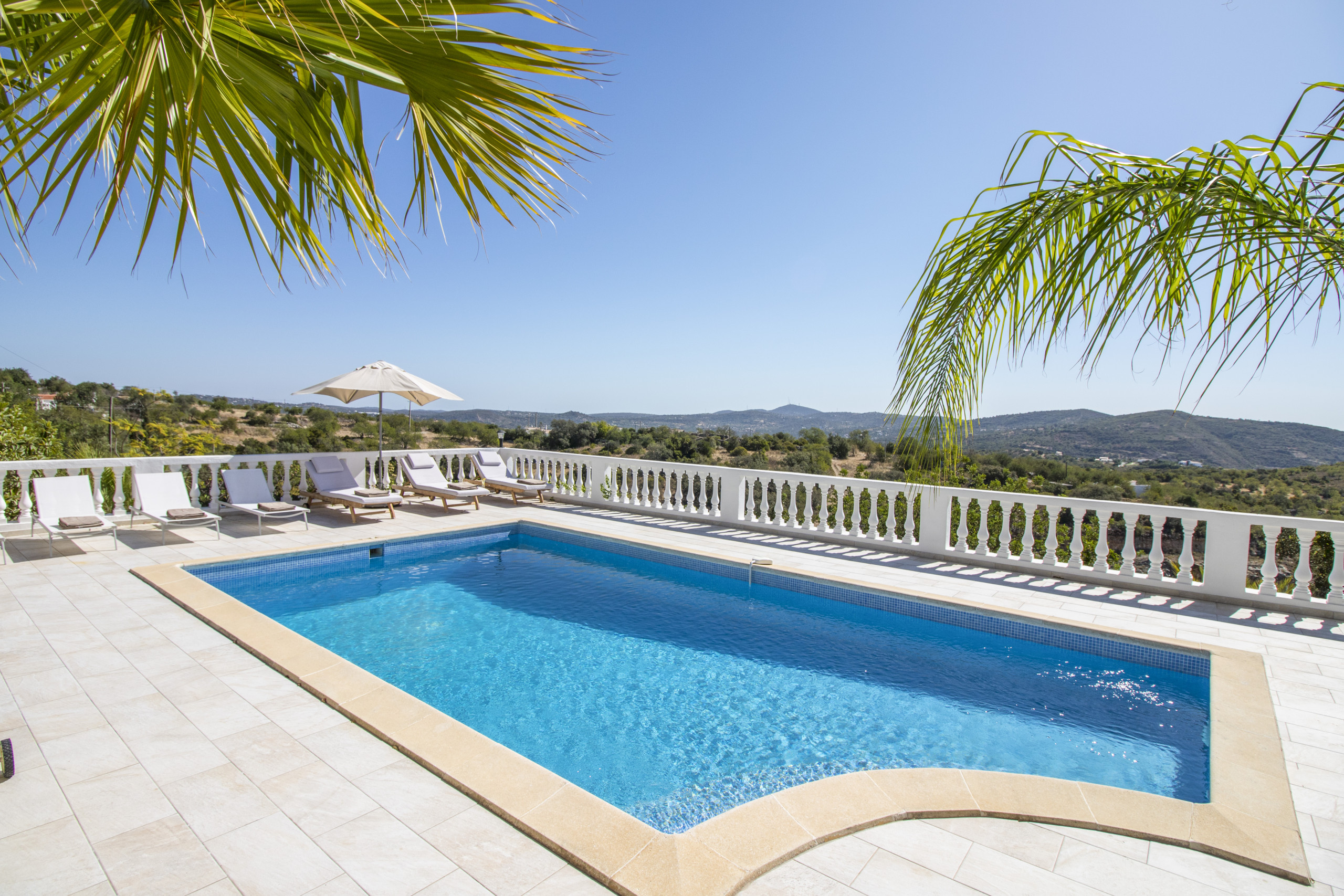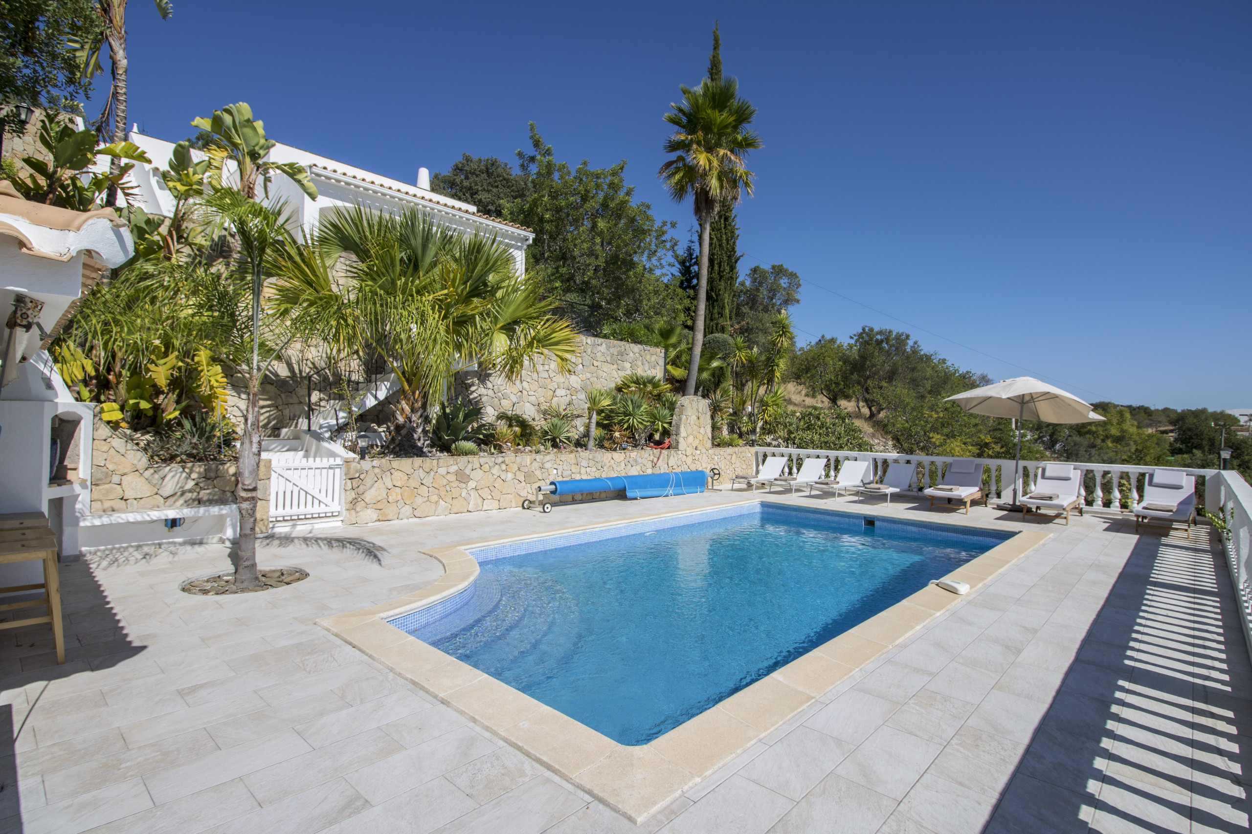 Caribe House is an isolated, spacious retreat in a very quiet rural area surrounded by nature, with extensive mountain and Algarve coast views. Just 15 minutes from Faro Airport and 20 minutes from Vilamoura, Faro or Olhão – ideal for peace and quiet (car essential, not for walkable nightlife). Picture yourself enjoying 180º sunset views from the private pool, relaxing in shaded outdoor lounges, or dining al fresco with the gas BBQ. Perfect for large families or friend groups of up to 10.