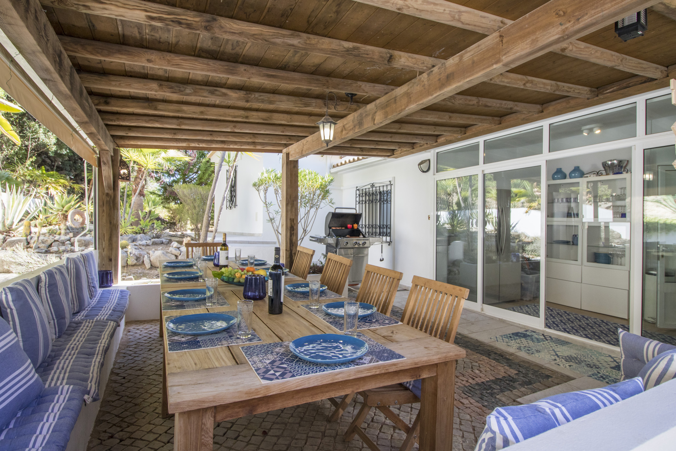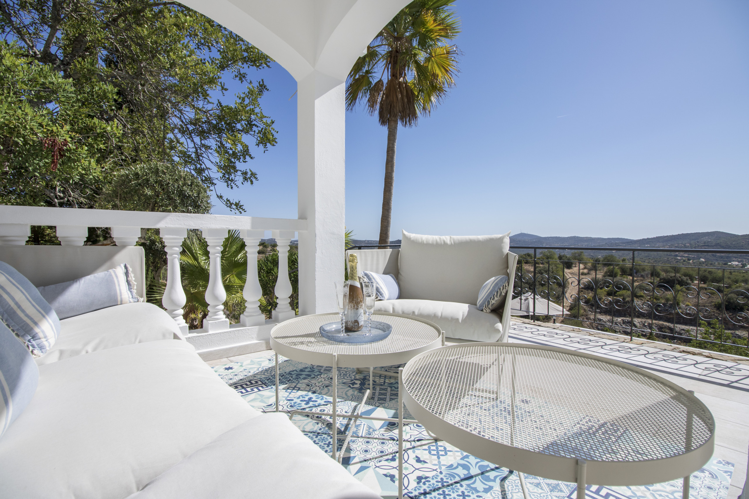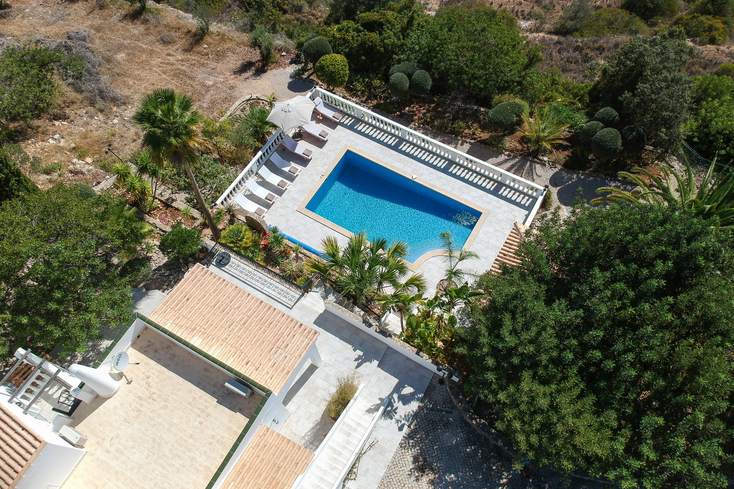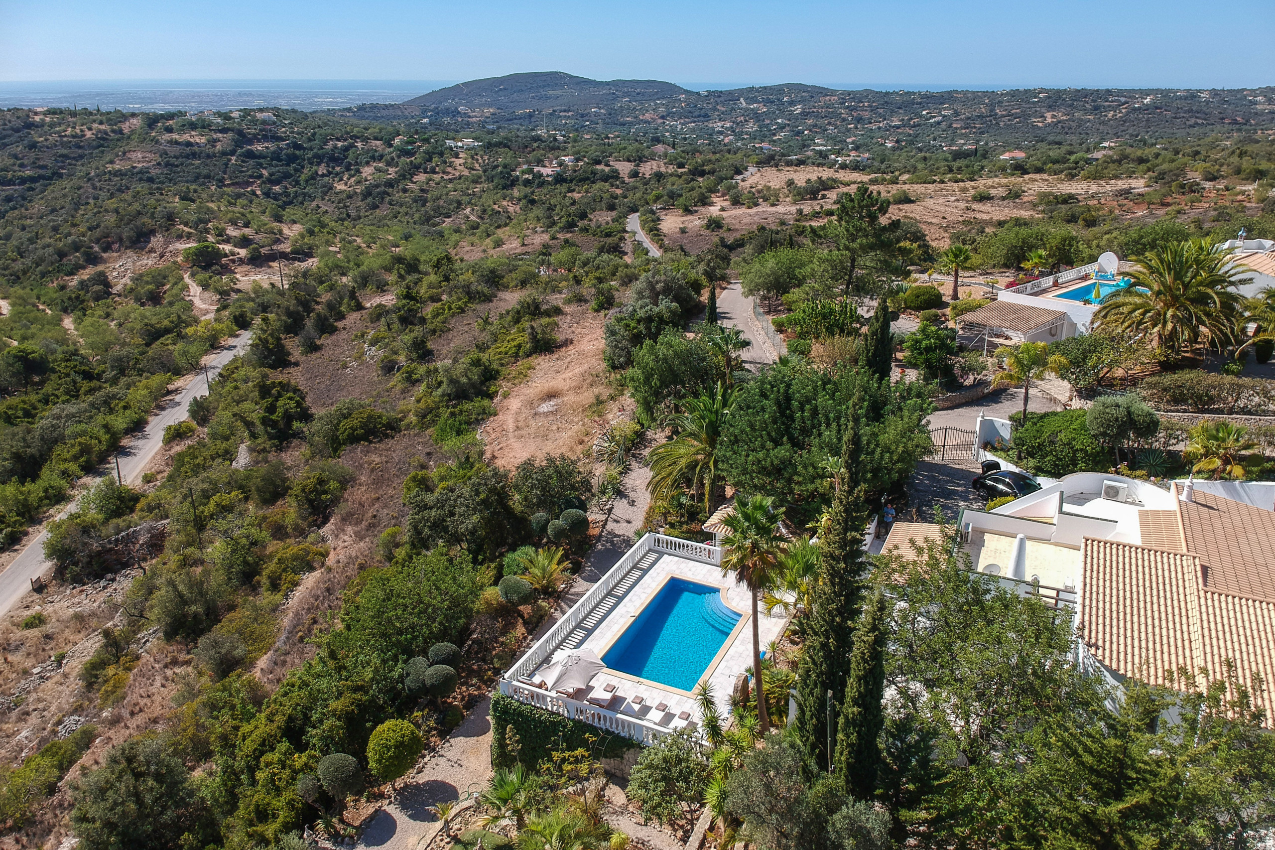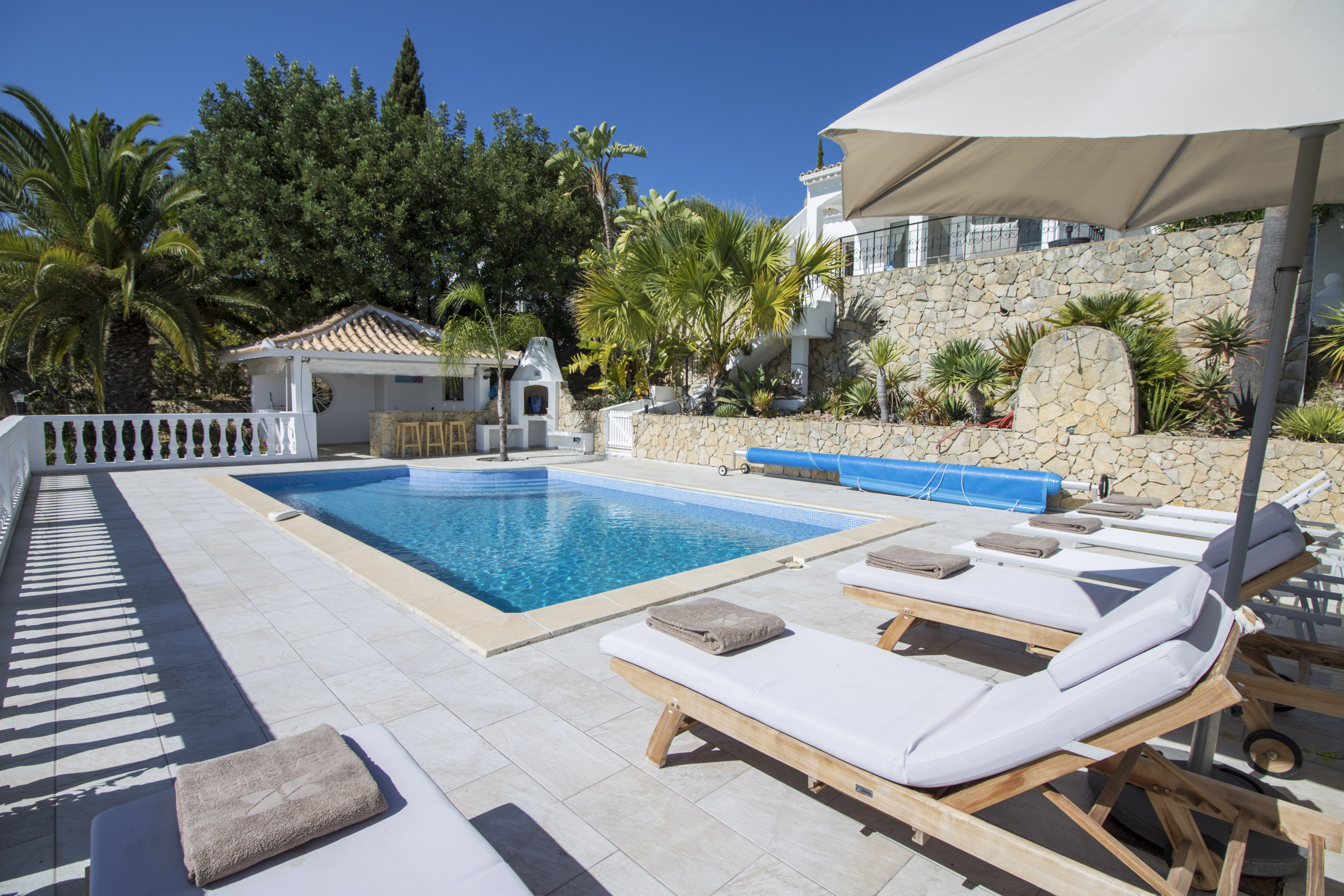 Caribe House is an isolated, spacious retreat in a very quiet rural area surrounded by nature, with extensive mountain and Algarve coast views. Just 15 minutes from Faro Airport and 20 minutes from Vilamoura, Faro or Olhão – ideal for peace and quiet (car essential, not for walkable nightlife). Picture yourself enjoying 180º sunset views from the private pool, relaxing in shaded outdoor lounges, or dining al fresco with the gas BBQ. Perfect for large families or friend groups of up to 10.