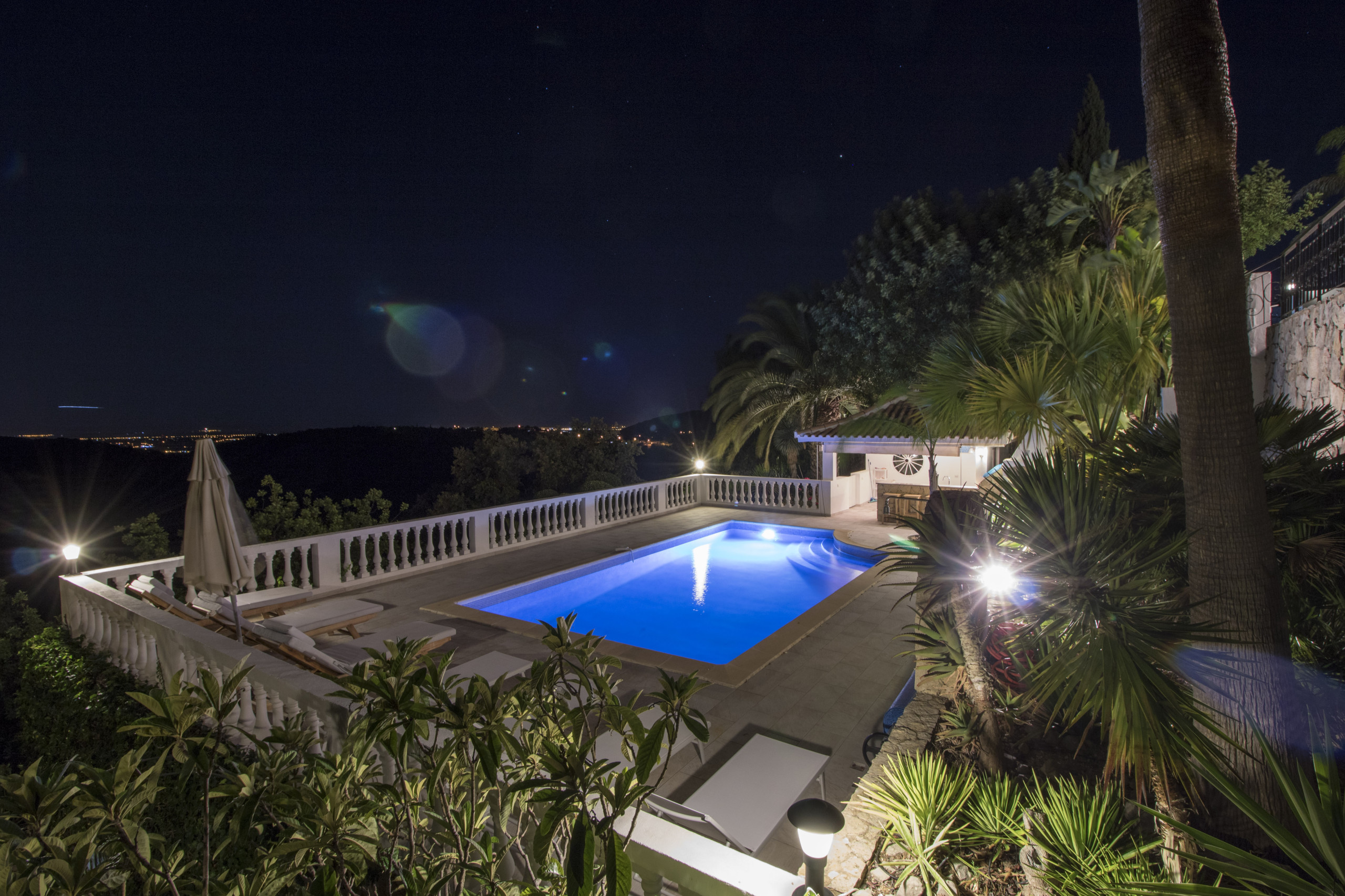 Idilic, quiet location. Spacious and well designed villa spread out on different levels. Short drive to local town with restaurants and supermarkets.